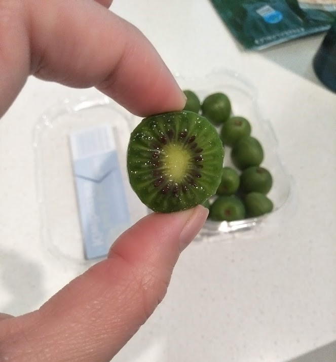 키위인데 정말 작은 미니사이즈의 귀여운 키위이다. 내가 구입한 키위베리는 뉴질랜드에서 건너왔고 호주에서 판매된다. 이 키위베리는 깨끗하게 씻어서 껍질채 먹을 수 있다. 반을 잘라보면 정말 키위랑 똑같이 생겼다. 보통의 키위처럼 녹색을 띠며 안에 씨가 촘촘히 박혀있어 먹기 아까울 정도로 귀엽다. 맛은 달달한 키위맛이다. 보통 그린키위는 시큼한 맛과 달달한 맛이 섞여있는데 이 키위베리는 마치 골드키위 같다. 일반키위보다 육즙이 풍부하여 껍질채 먹을 수 있어 키위를 먹고 싶은데 껍질 까기 귀찮은 사람들에게 제격이 아닐까?ㅋㅋ